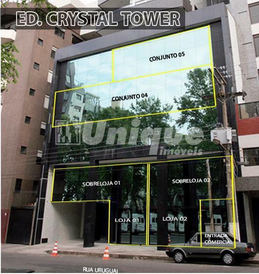 Sala comercial ampla, com banheiro, iluminação, elevado, recepção, acabamentos em gesso, laje, pintura nova, piso de porcelanato.